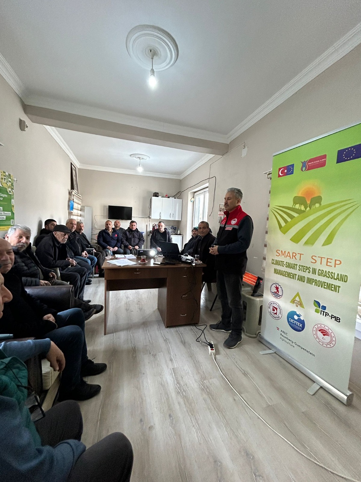 On the final day of the activity, the project “Climate-Smart Steps in Grassland Management and Improvement” (Project No: 2025-1-TR01-KA220-VET-000349844) was introduced to the participants. The presentation covered the project’s objectives concerning the management and improvement of pastures under climate change conditions. In addition, examples of similar initiatives implemented in other European countries and relevant guides and resources for pasture management and improvement were presented. Information on ongoing project activities and expected outputs was also provided